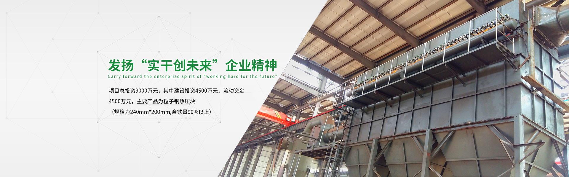 我公司现有钢渣粒子钢烘干液压成型生产线两条,年可生产钢渣粒子钢块50万吨,年实现销售收入12亿元,缴税金约4000万元。